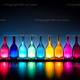 schen, glasflaschen, glas, … bunte leuchtende glasflaschen auf dun